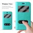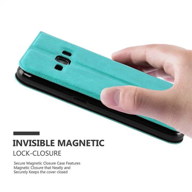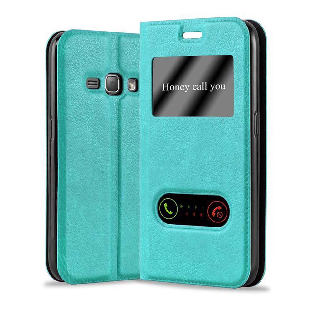 CADORABO Samsung Galaxy J1 2015 v mint turquoise - Zaščitni ovitek z magnetnim zapiranjem, stoječo funkcijo in 2 okencema za gledanje