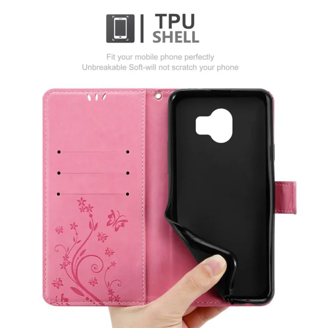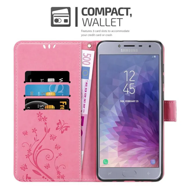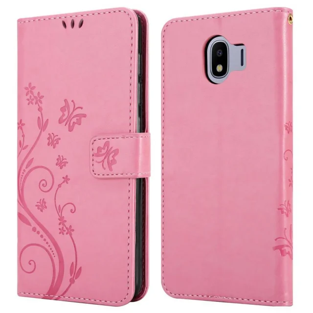 CADORABO Samsung Galaxy J4 2018 v klasična zlata - ovitek v cvetličnem dizajnu z magnetnim zapiranjem, stoječo funkcijo in režami za kartice