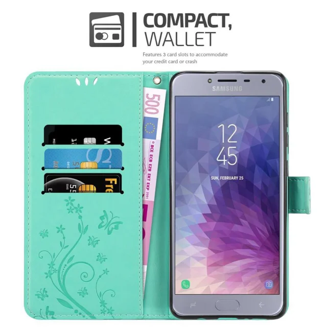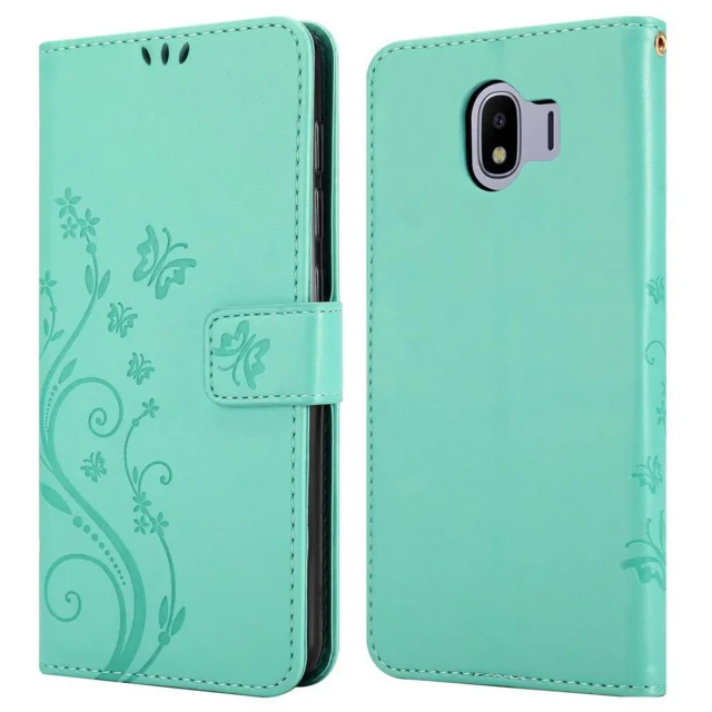 CADORABO Samsung Galaxy J4 2018 v klasično srebrno - ovitek v cvetličnem dizajnu z magnetnim zapiranjem, stoječo funkcijo in režami za kartice