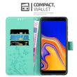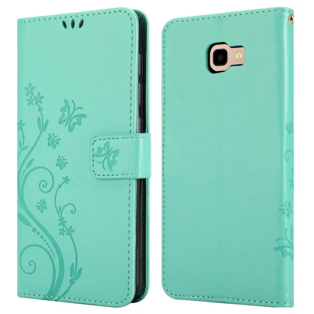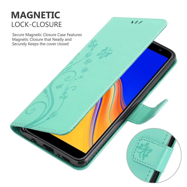 CADORABO Samsung Galaxy J4 PLUS v klasično srebrno - ovitek v cvetličnem dizajnu z magnetnim zapiranjem, stoječo funkcijo in režami za kartice