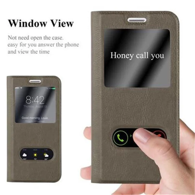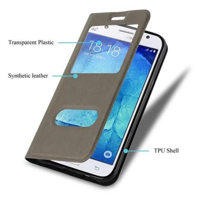 CADORABO Samsung Galaxy J5 2015 v kamnito rjava - Zaščitni ovitek z magnetnim zapiranjem, stoječo funkcijo in 2 okencema za gledanje