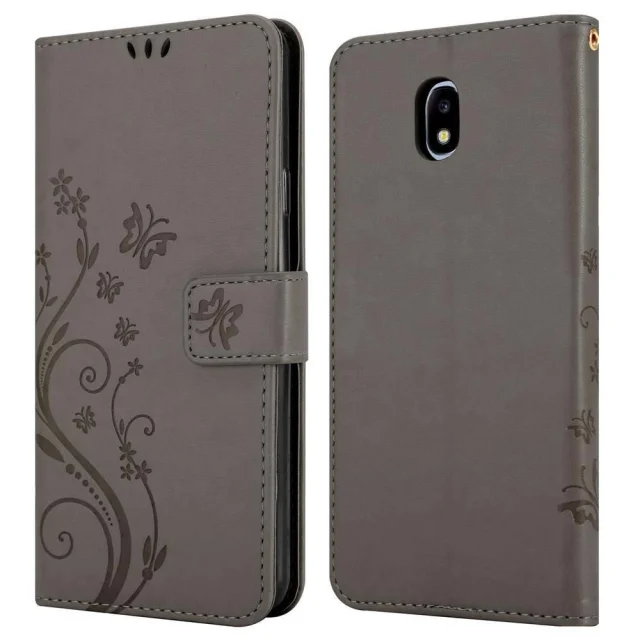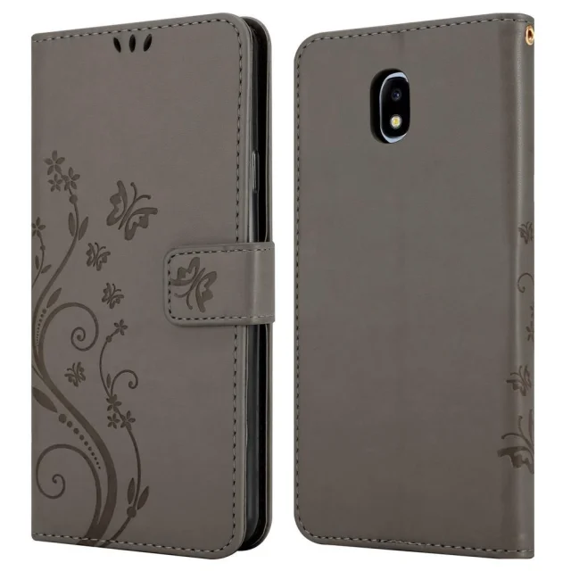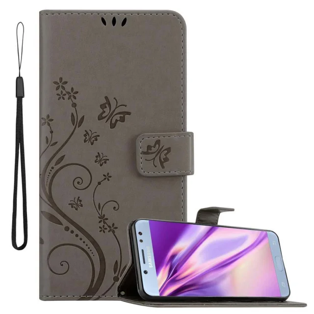 CADORABO Samsung Galaxy J5 2017 v klasična črna - ovitek v cvetličnem dizajnu z magnetnim zapiranjem, stoječo funkcijo in režami za kartice