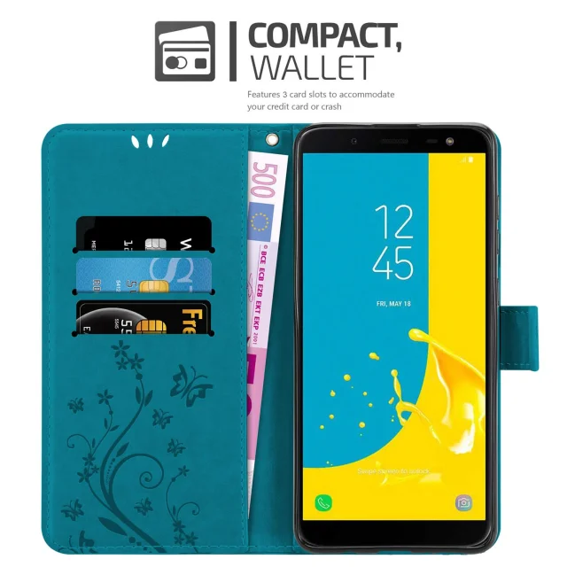 CADORABO Samsung Galaxy J6 2018 v klasična rožnata zlata - ovitek v cvetličnem dizajnu z magnetnim zapiranjem, stoječo funkcijo in režami za kartice