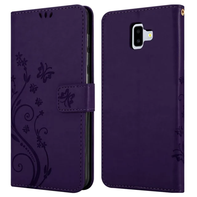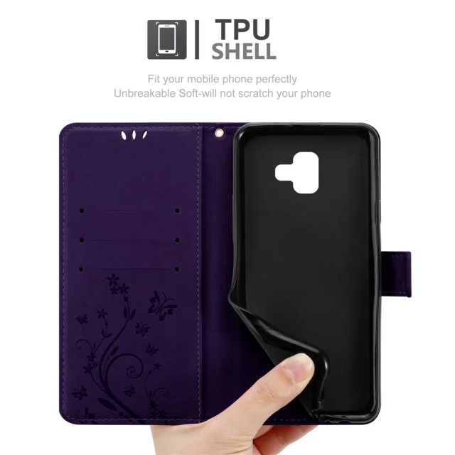CADORABO Samsung Galaxy J6 PLUS v klasična temno modra - ovitek v cvetličnem dizajnu z magnetnim zapiranjem, stoječo funkcijo in režami za kartice