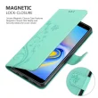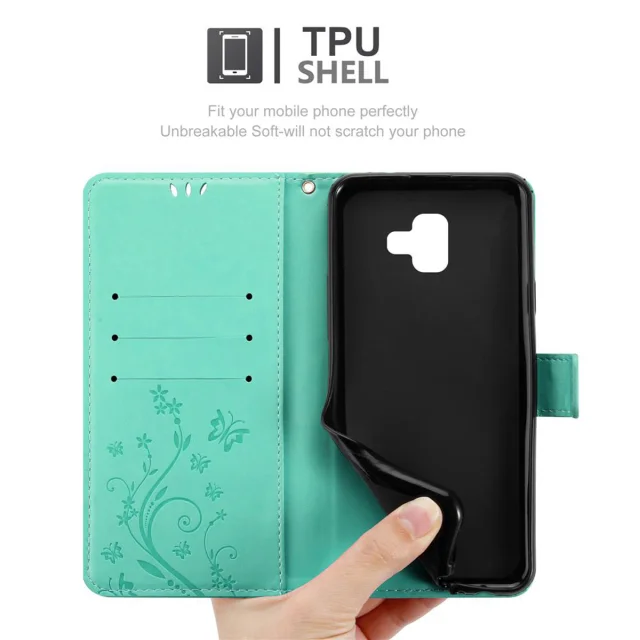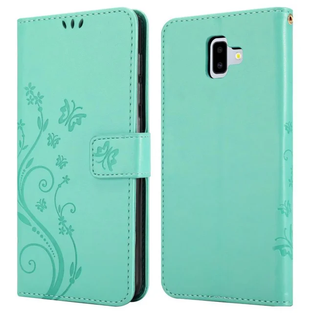 CADORABO Samsung Galaxy J6 PLUS v klasično srebrno - ovitek v cvetličnem dizajnu z magnetnim zapiranjem, stoječo funkcijo in režami za kartice