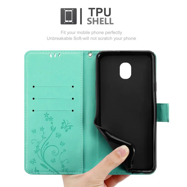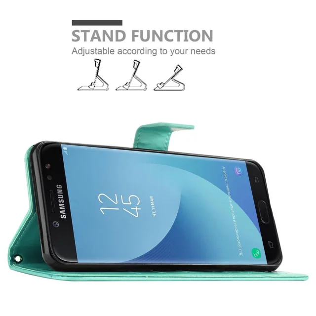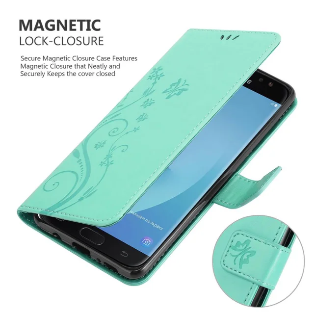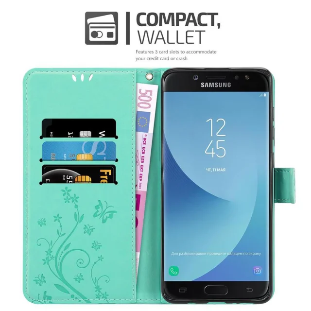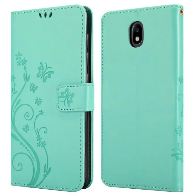 CADORABO Samsung Galaxy J7 2018 v klasično srebrno - ovitek v cvetličnem dizajnu z magnetnim zapiranjem, stoječo funkcijo in režami za kartice
