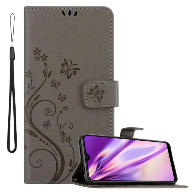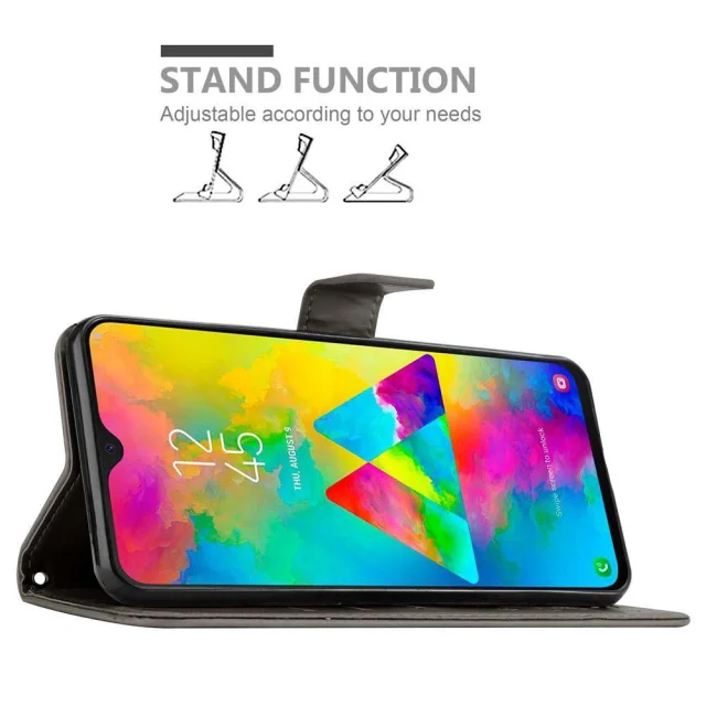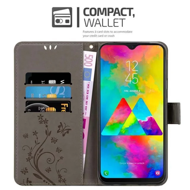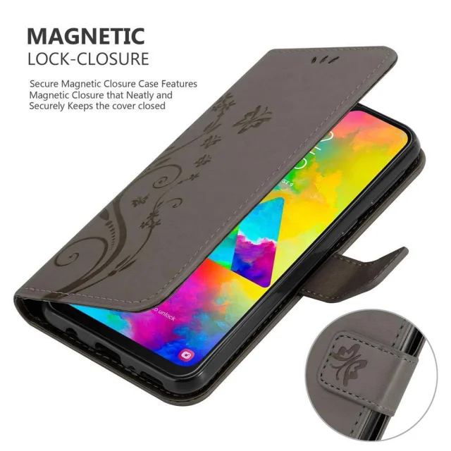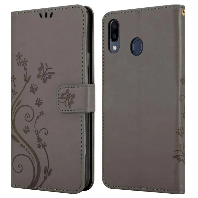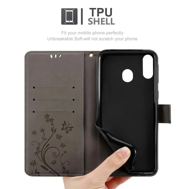 CADORABO Samsung Galaxy M20 v klasična črna - ovitek v cvetličnem dizajnu z magnetnim zapiranjem, stoječo funkcijo in režami za kartice