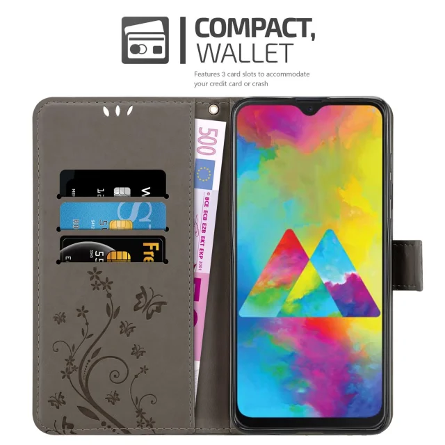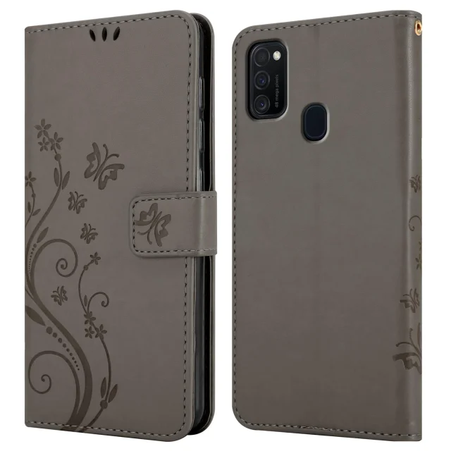 CADORABO Samsung Galaxy M21/M30s v klasična črna - ovitek v cvetličnem dizajnu z magnetnim zapiranjem, stoječo funkcijo in režami za kartice