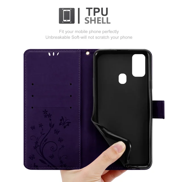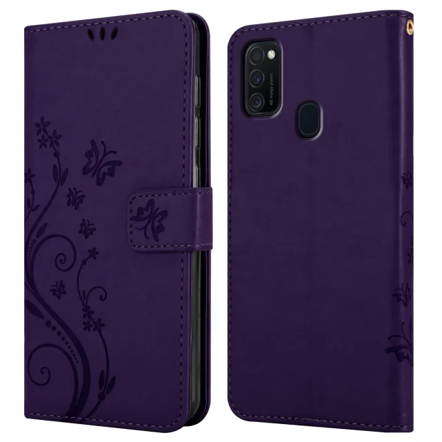 CADORABO Samsung Galaxy M21/M30s v klasična temno modra - ovitek v cvetličnem dizajnu z magnetnim zapiranjem, stoječo funkcijo in režami za kartice