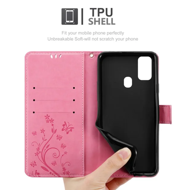 CADORABO Samsung Galaxy M21/M30s v klasična zlata - ovitek v cvetličnem dizajnu z magnetnim zapiranjem, stoječo funkcijo in režami za kartice