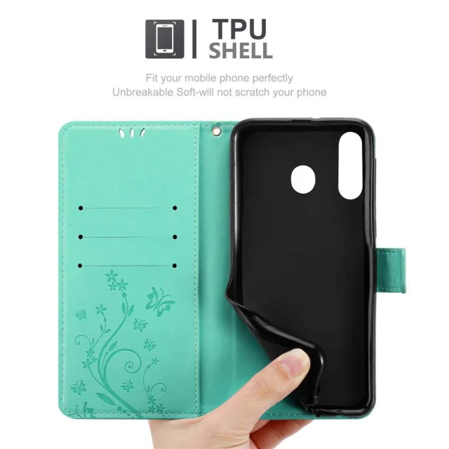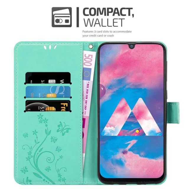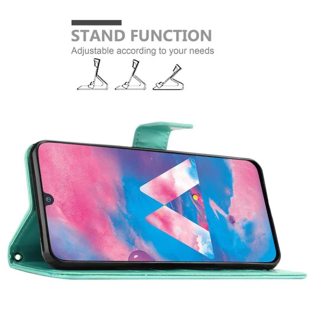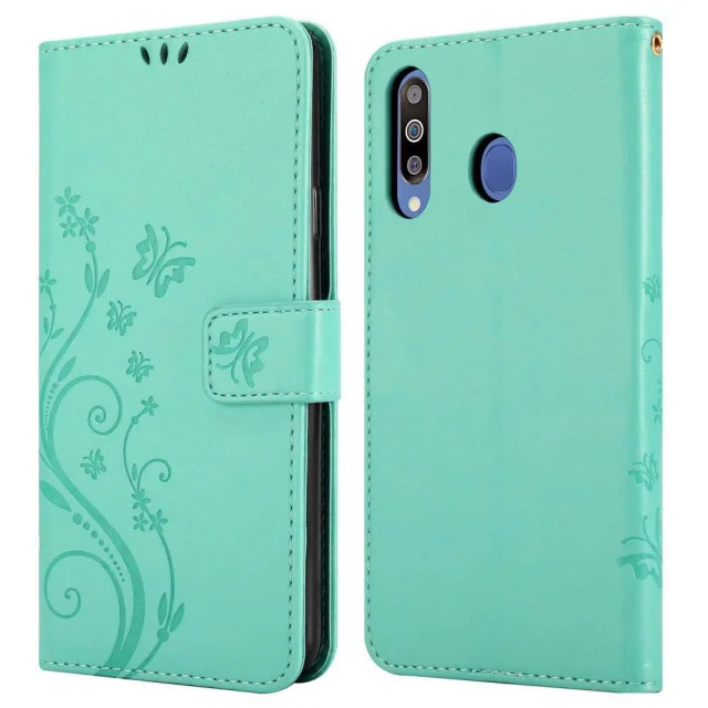 CADORABO Samsung Galaxy M30/A40s v klasično srebrno - ovitek v cvetličnem dizajnu z magnetnim zapiranjem, stoječo funkcijo in režami za kartice