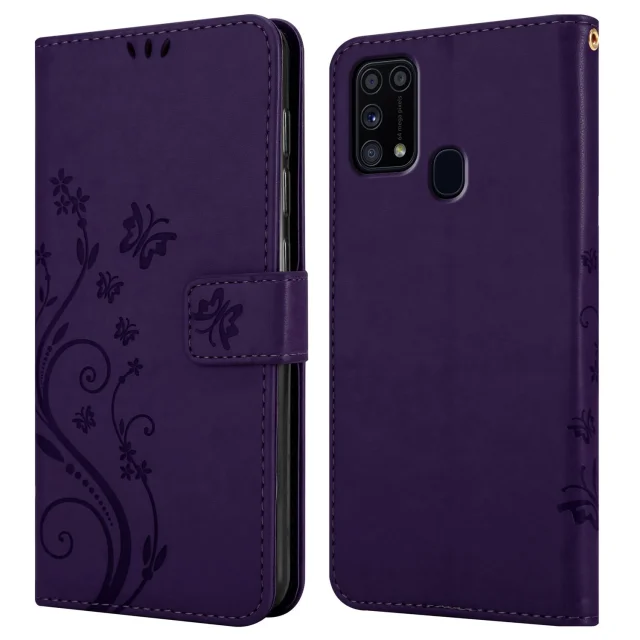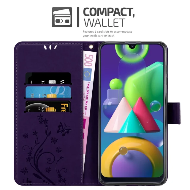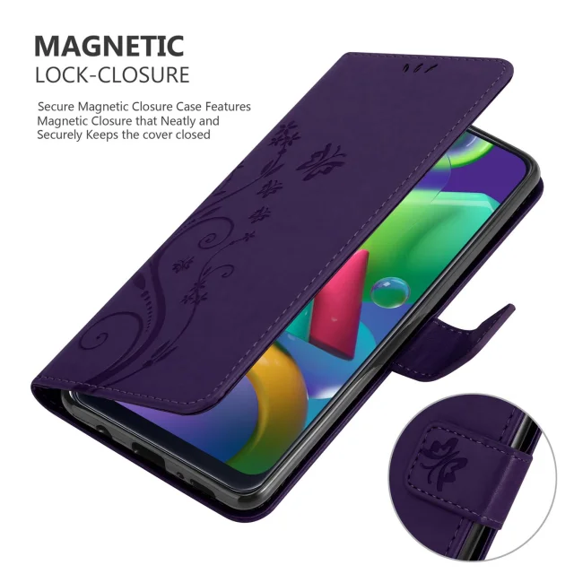 CADORABO Samsung Galaxy M31 v klasična temno modra - ovitek v cvetličnem dizajnu z magnetnim zapiranjem, stoječo funkcijo in režami za kartice