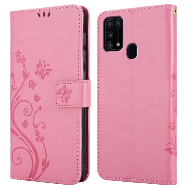 CADORABO Samsung Galaxy M31 v klasična zlata - ovitek v cvetličnem dizajnu z magnetnim zapiranjem, stoječo funkcijo in režami za kartice