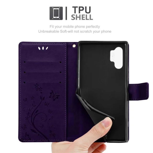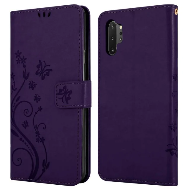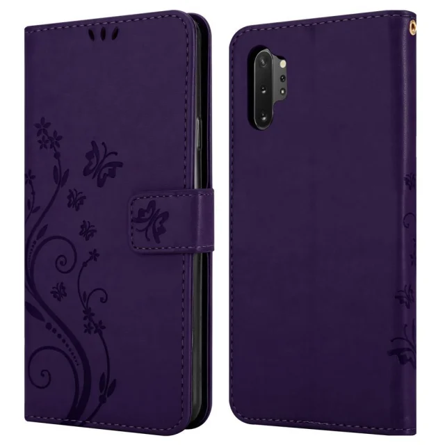 CADORABO Samsung Galaxy NOTE 10 PLUS temno modra - ovitek v cvetličnem dizajnu z magnetnim zapiranjem, stoječo funkcijo in režami za kartice