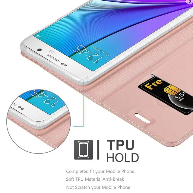 CADORABO Samsung Galaxy NOTE 5 v klasična rožnata zlata - Zaščitni ovitek z magnetnim zapiranjem, stoječo funkcijo in režo za kartice