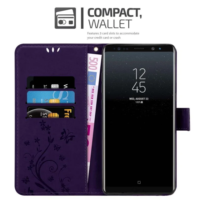 CADORABO Samsung Galaxy NOTE 8 v klasična temno modra - ovitek v cvetličnem dizajnu z magnetnim zapiranjem, stoječo funkcijo in režami za kartice