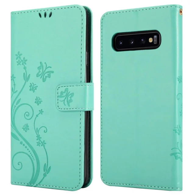 CADORABO Samsung Galaxy S10 5G v klasično srebrno - ovitek v cvetličnem dizajnu z magnetnim zapiranjem, stoječo funkcijo in režami za kartice