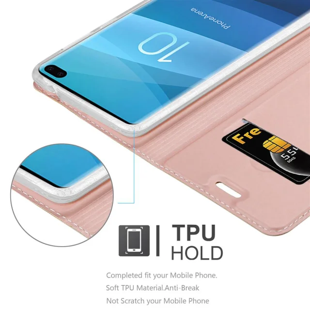 CADORABO Samsung Galaxy S10 PLUS v klasična rožnata zlata - Zaščitni ovitek z magnetnim zapiranjem, stoječo funkcijo in režo za kartice