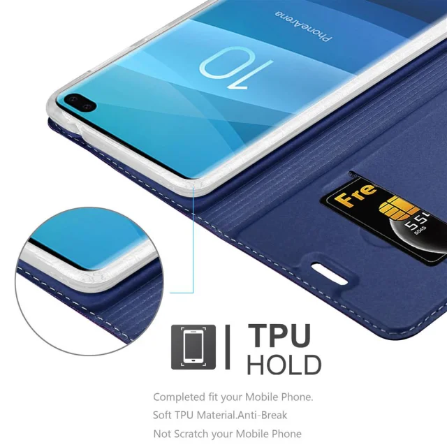 CADORABO Samsung Galaxy S10 PLUS v klasična temno modra - Zaščitni ovitek z magnetnim zapiranjem, stoječo funkcijo in režo za kartice