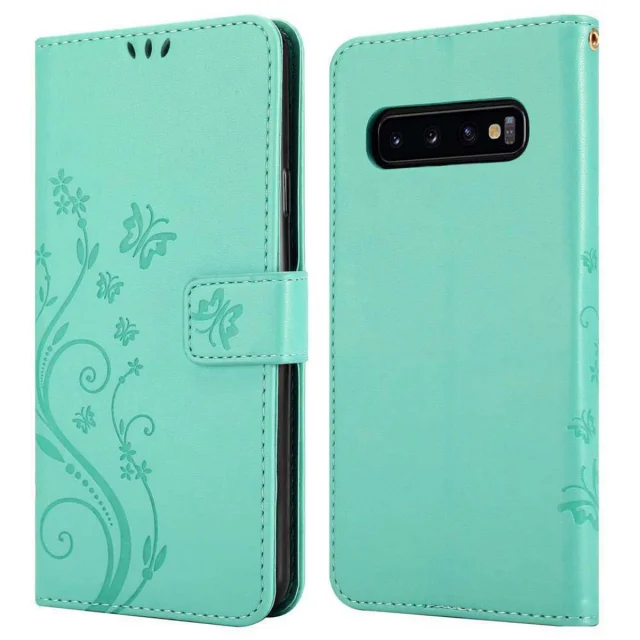 CADORABO Samsung Galaxy S10 PLUS v klasično srebrno - ovitek v cvetličnem dizajnu z magnetnim zapiranjem, stoječo funkcijo in režami za kartice