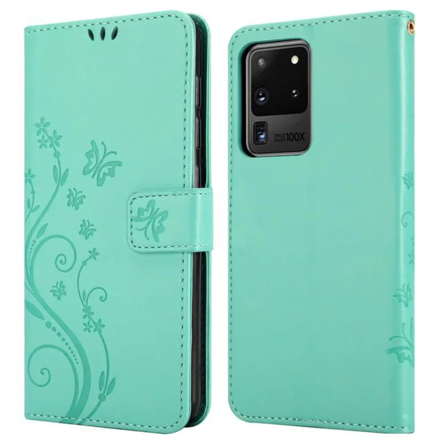 CADORABO Samsung Galaxy S20 ULTRA v klasično srebrno - ovitek v cvetličnem dizajnu z magnetnim zapiranjem, stoječo funkcijo in režami za kartice