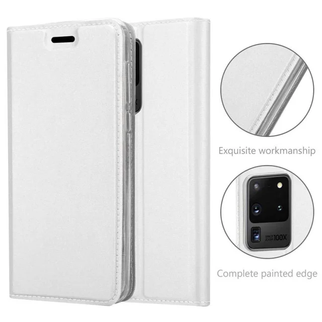 CADORABO Samsung Galaxy S20 ULTRA v klasično srebrno - Zaščitni ovitek z magnetnim zapiranjem, stoječo funkcijo in režo za kartice
