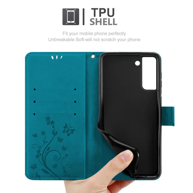 CADORABO Samsung Galaxy S21 PLUS v klasična rožnata zlata - ovitek v cvetličnem dizajnu z magnetnim zapiranjem, stoječo funkcijo in režami za kartice