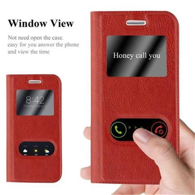 CADORABO Samsung Galaxy S3 MINI v žafranovo rdeča - Zaščitni ovitek z magnetnim zapiranjem, stoječo funkcijo in 2 okencema za gledanje