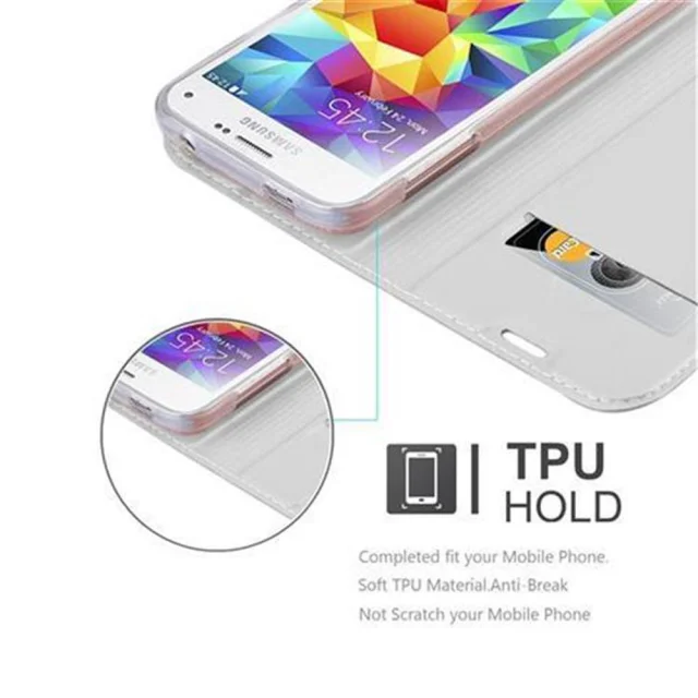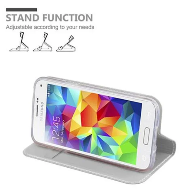 CADORABO Samsung Galaxy S5 MINI/S5 MINI DUOS v klasično srebrno - Zaščitni ovitek z magnetnim zapiranjem, stoječo funkcijo in režo za kartice