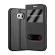 CADORABO Samsung Galaxy S6 EDGE PLUS v črni komet - Zaščitni ovitek z magnetnim zapiranjem, stoječo funkcijo in 2 okencema za gledanje