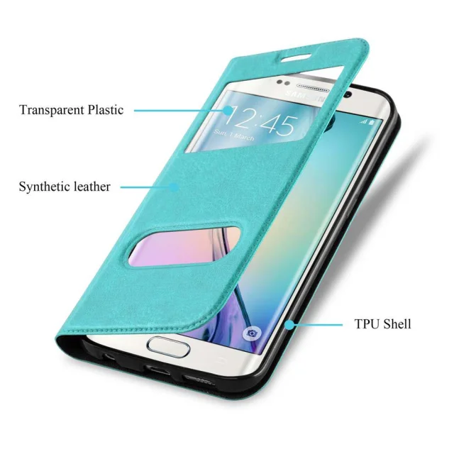 CADORABO Samsung Galaxy S6 EDGE PLUS v mint turquoise - Zaščitni ovitek z magnetnim zapiranjem, stoječo funkcijo in 2 okencema za gledanje