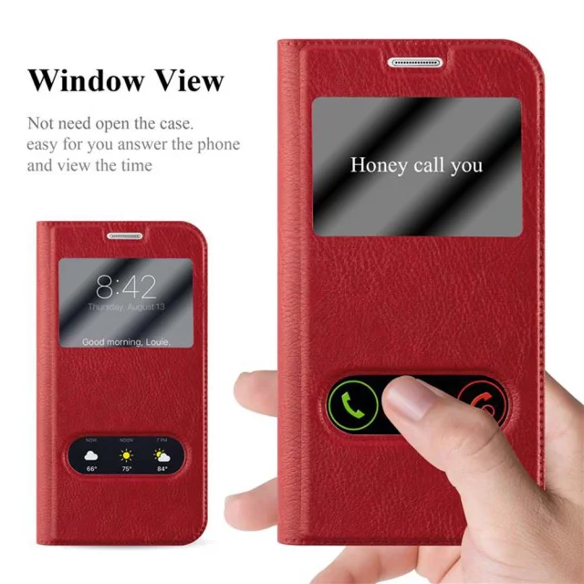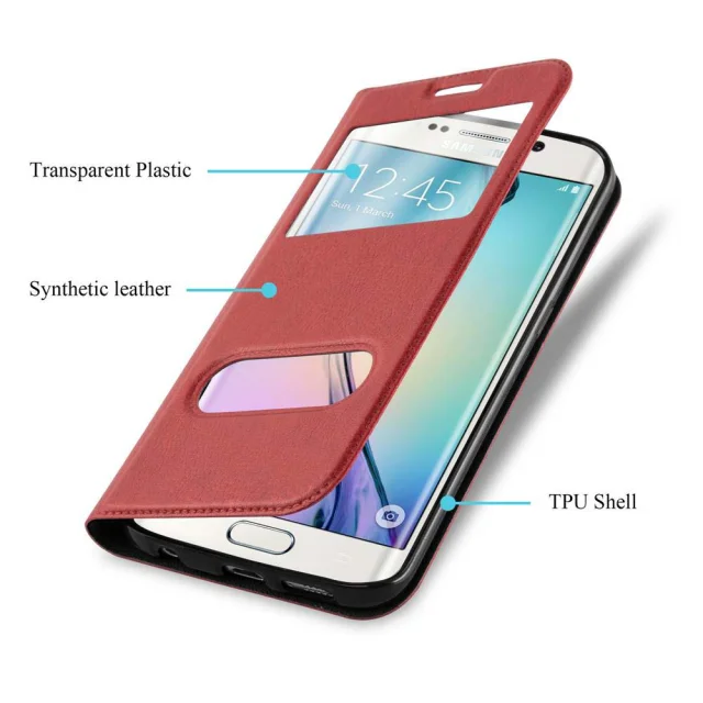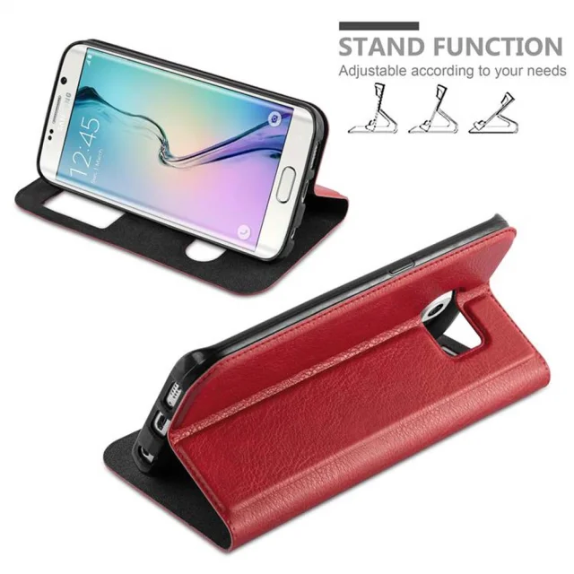 CADORABO Samsung Galaxy S6 EDGE PLUS v žafranovo rdeča - Zaščitni ovitek z magnetnim zapiranjem, stoječo funkcijo in 2 okencema za gledanje