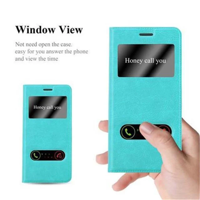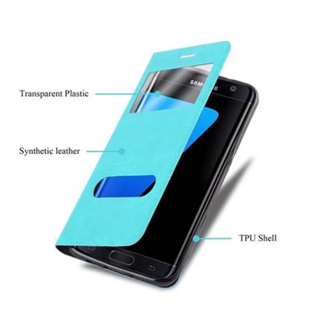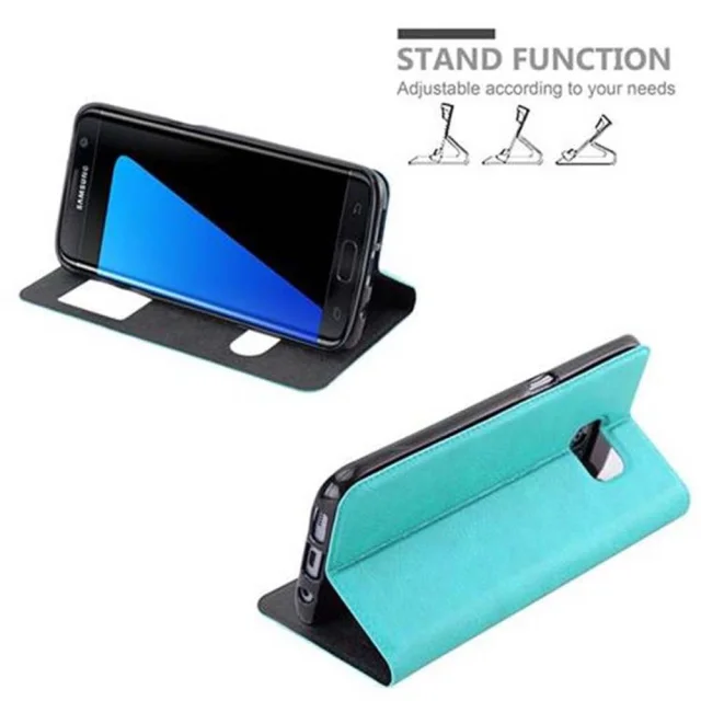 CADORABO Samsung Galaxy S7 EDGE v mint turquoise - Zaščitni ovitek z magnetnim zapiranjem, stoječo funkcijo in 2 okencema za gledanje