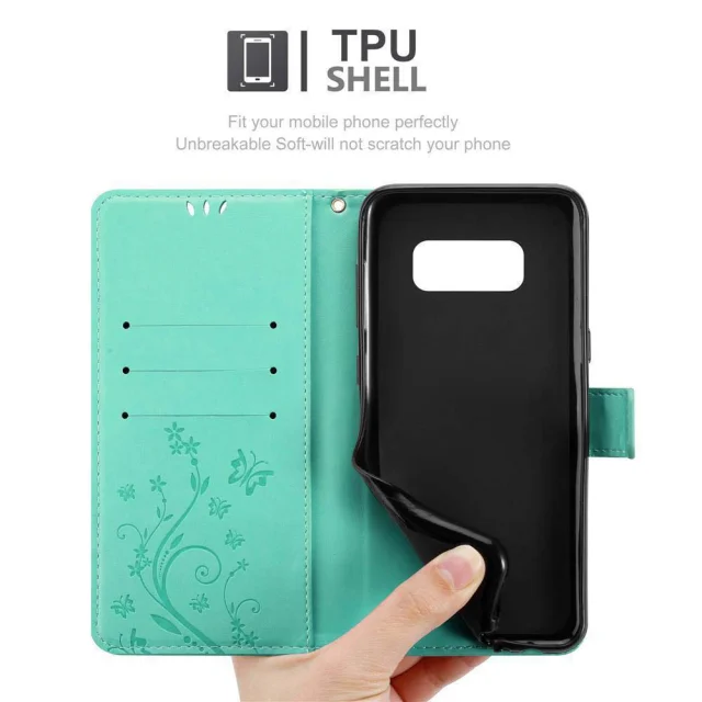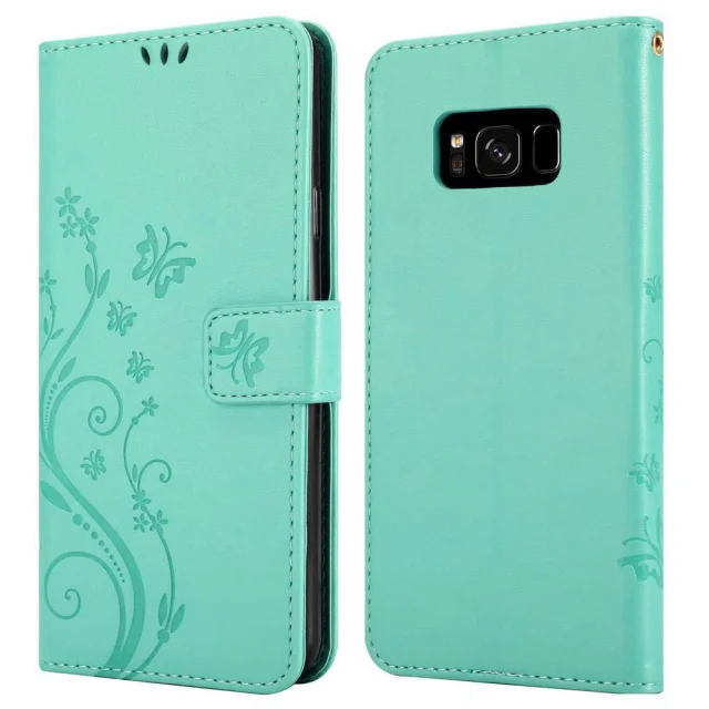 CADORABO Samsung Galaxy S8 PLUS v klasično srebrno - ovitek v cvetličnem dizajnu z magnetnim zapiranjem, stoječo funkcijo in režami za kartice
