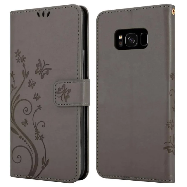 CADORABO Samsung Galaxy S8 v klasična črna - ovitek v cvetličnem dizajnu z magnetnim zapiranjem, stoječo funkcijo in režami za kartice