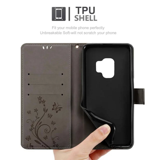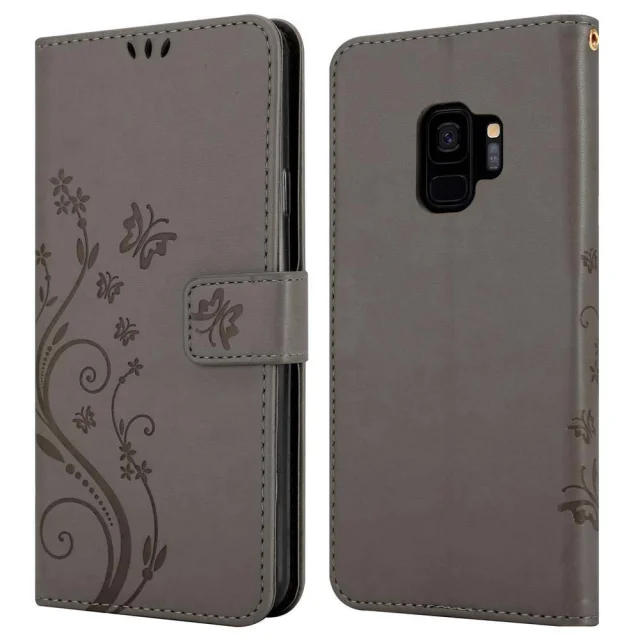 CADORABO Samsung Galaxy S9 v klasična črna - ovitek v cvetličnem dizajnu z magnetnim zapiranjem, stoječo funkcijo in režami za kartice