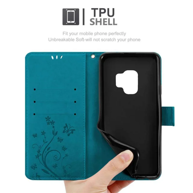 CADORABO Samsung Galaxy S9 v klasična rožnata zlata - ovitek v cvetličnem dizajnu z magnetnim zapiranjem, stoječo funkcijo in režami za kartice