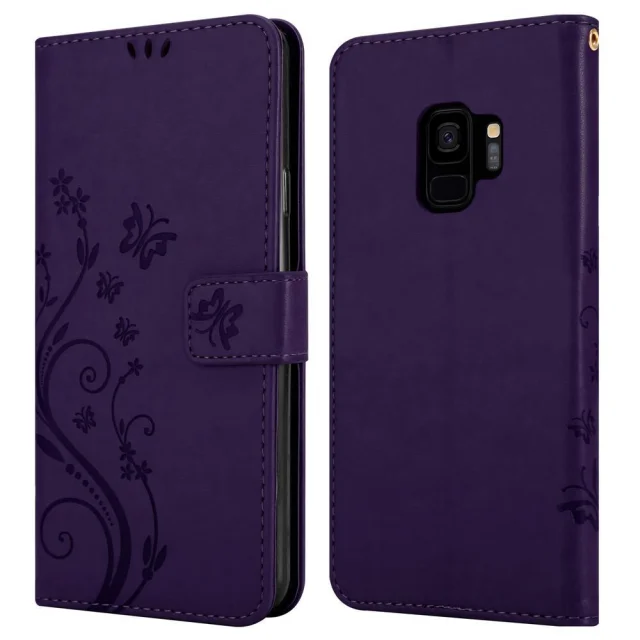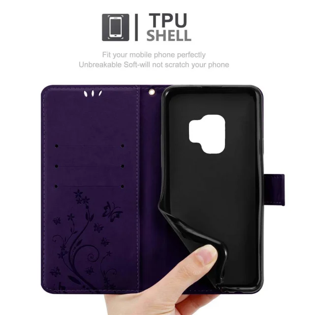 CADORABO Samsung Galaxy S9 v klasična temno modra - ovitek v cvetličnem dizajnu z magnetnim zapiranjem, stoječo funkcijo in režami za kartice