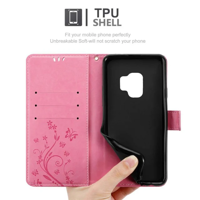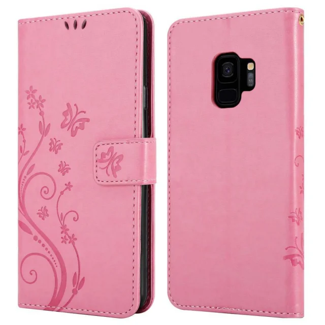 CADORABO Samsung Galaxy S9 v klasična zlata - ovitek v cvetličnem dizajnu z magnetnim zapiranjem, stoječo funkcijo in režami za kartice
