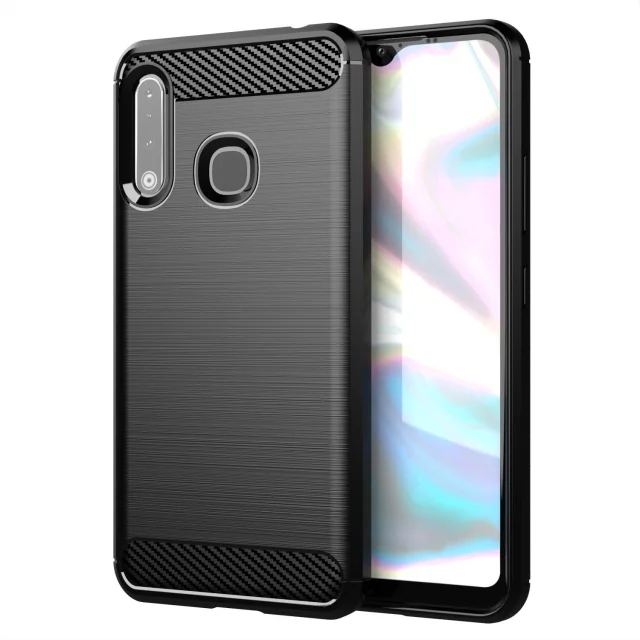 CADORABO Samsung v brušenem črnem - zaščitnem pokrovu, narejen iz fleksibilnega silikona TPU v videzu iz nerjavečega jekla ogljika