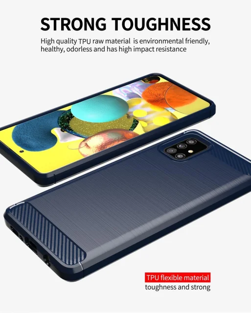 CADORABO Samsung v brušenem modrem - zaščitnem pokrovu, narejen iz fleksibilnega silikona TPU v videzu iz nerjavečega jekla ogljika