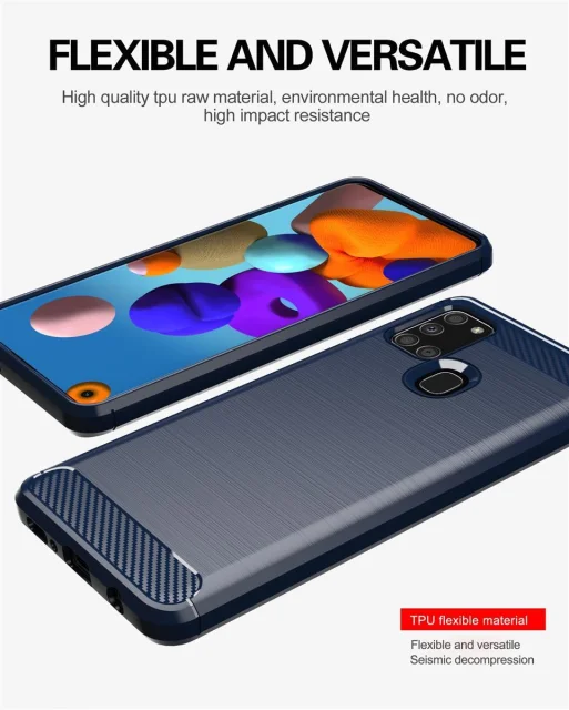CADORABO Samsung v brušenem modrem - zaščitnem pokrovu, narejen iz fleksibilnega silikona TPU v videzu iz nerjavečega jekla ogljika