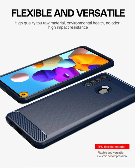 CADORABO Samsung v brušenem modrem - zaščitnem pokrovu, narejen iz fleksibilnega silikona TPU v videzu iz nerjavečega jekla ogljika
