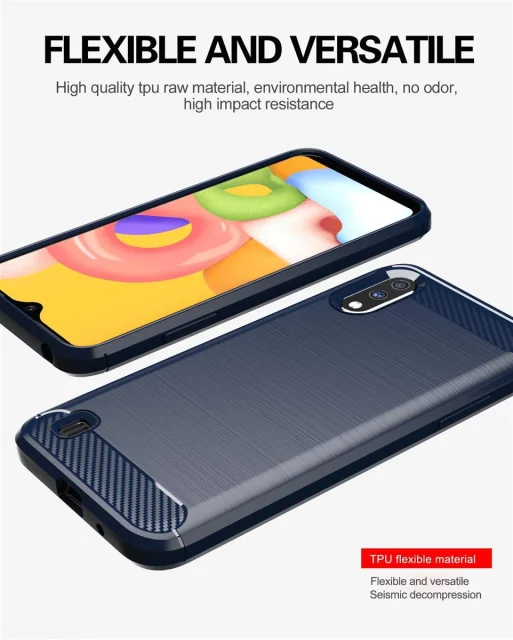CADORABO Samsung v brušenem modrem - zaščitnem pokrovu, narejen iz fleksibilnega silikona TPU v videzu iz nerjavečega jekla ogljika