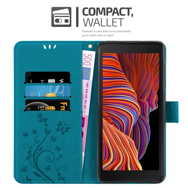 CADORABO Samsung v cvetlični modri barvi - zaščitni pokrov v oblikovanju cvetja z magnetnim zapiranjem, stoječimi funkcijami in režami za kartice