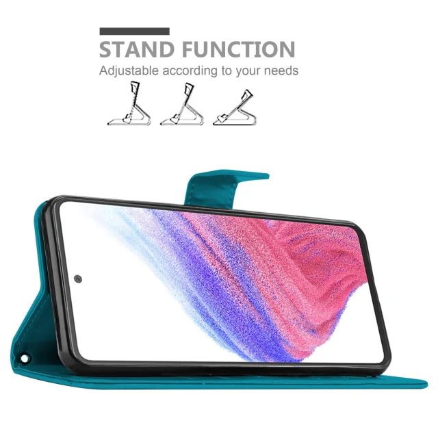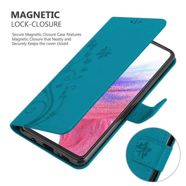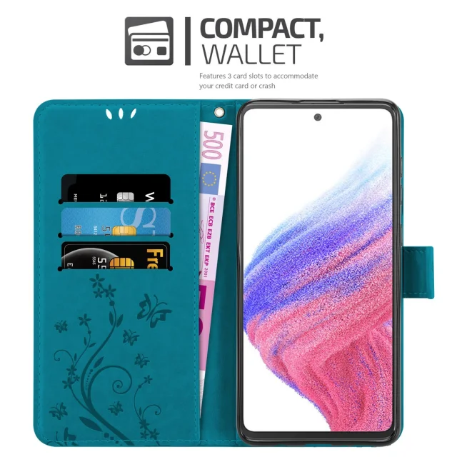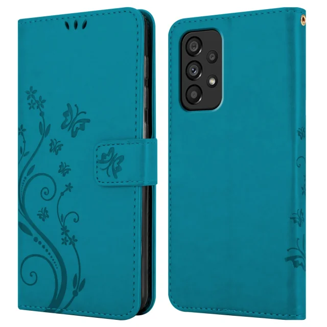 CADORABO Samsung v cvetlični modri barvi - zaščitni pokrov v oblikovanju cvetja z magnetnim zapiranjem, stoječimi funkcijami in režami za kartice