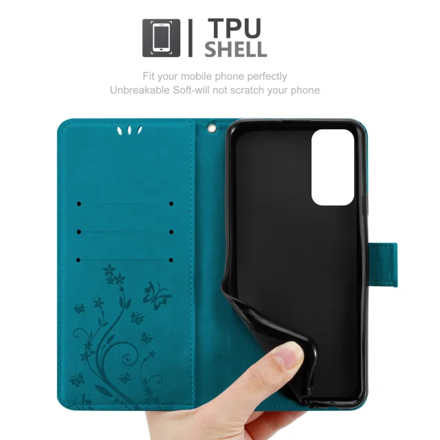 CADORABO Samsung v cvetlični modri barvi - zaščitni pokrov v oblikovanju cvetja z magnetnim zapiranjem, stoječimi funkcijami in režami za kartice
