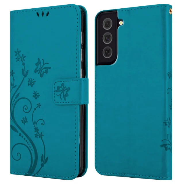 CADORABO Samsung v cvetlični modri barvi - zaščitni pokrov v oblikovanju cvetja z magnetnim zapiranjem, stoječimi funkcijami in režami za kartice