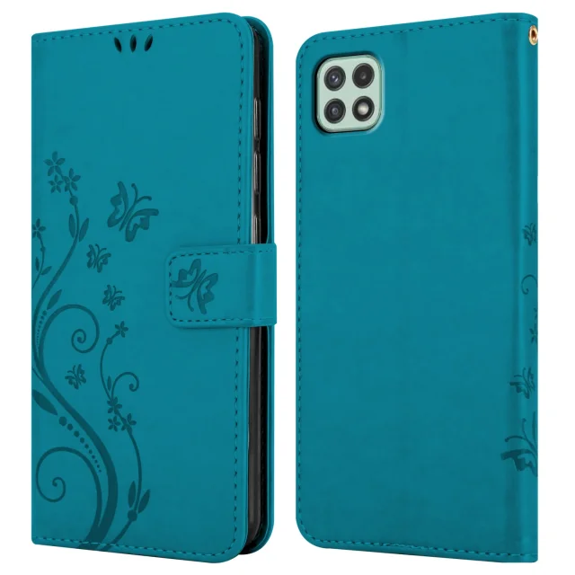 CADORABO Samsung v cvetlični modri barvi - zaščitni pokrov v oblikovanju cvetja z magnetnim zapiranjem, stoječimi funkcijami in režami za kartice