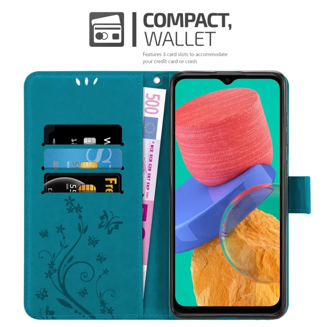 CADORABO Samsung v cvetlični modri barvi - zaščitni pokrov v oblikovanju cvetja z magnetnim zapiranjem, stoječimi funkcijami in režami za kartice